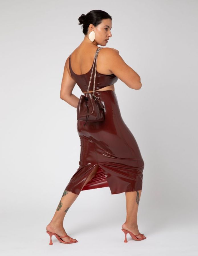 Founded by the designer Francesca Bellingeri in 2019, the company specializes in creating modern, body-friendly latex garments and accessories entirely handmade in Vigevano, Italy.