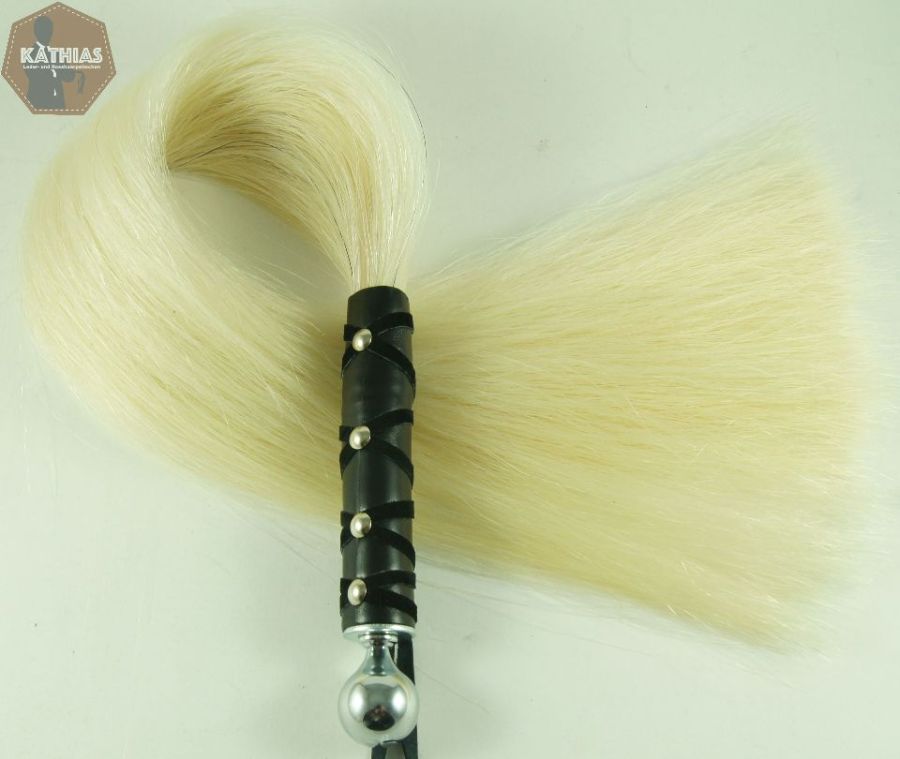 We, Katrin and Matthias, are KATHIAS. We have been building striking tools since 2011. In our range we have horsehair whips, leather floggers, slippers, SiS (stick in a dressing gown) and, since 2020, exclusively the "evil" Hasi!